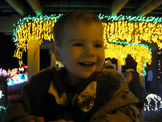 | Mommy and Daddy let me sit on their shoulders so I could get the best view. Mommy doesn't usually look this scary... It's the lighting. |